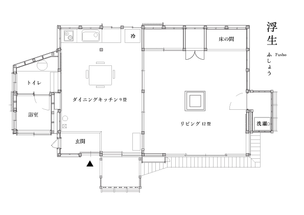 | 間取り | ダイニングキッチン(9畳間) / リビング(12畳間、囲炉裏つき) / トイレ / 浴室 / 洗濯室 |